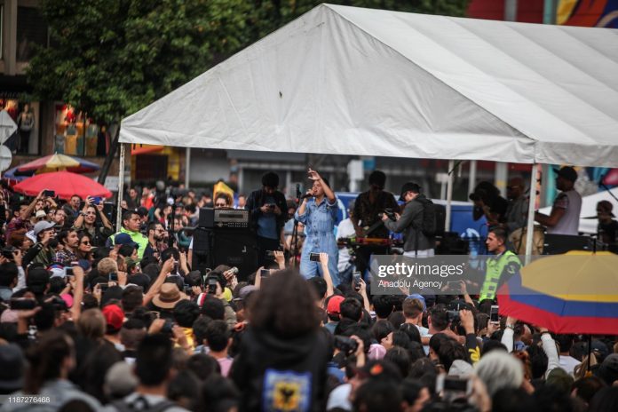 The event was a concert organized by Colombian musicians and artists to support the national strike and protests against the government of President Ivan Duque in Bogota, Colombia on December 8, 2019.