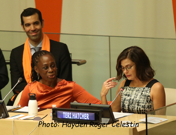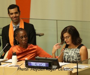 News Americas, UNITED NATIONS, NY, Weds. Nov. 26, 2014: Hollywood Actress Teri Hatcher had to consoled by the First Lady of New York City, Chirlane McCray, after she broke down speaking at the U.N. Tuesday about the sexual abuse suffered at the hands of her uncle when she was 7.
