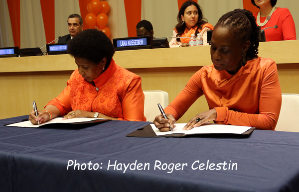 This year’s theme of ‘Orange Your Neighbourhood’ promises grassroots action to raise awareness in local communities. For example, the UN Secretariat building and the Empire State Building were lit orange last night, and many wore orange today to show support and solidarity in ending the scourge that affects one in three women worldwide.