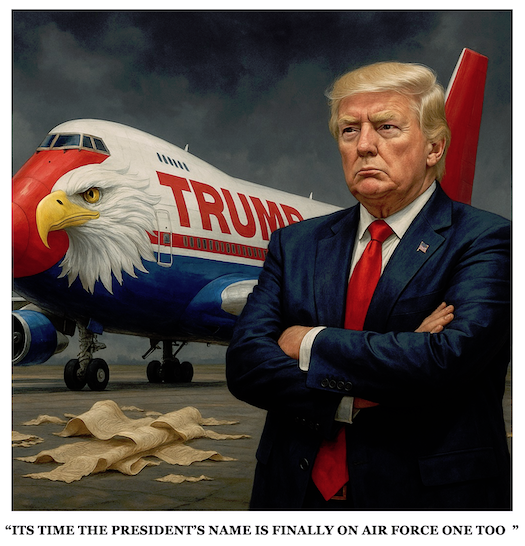 Let’s be clear: a sitting president accepting a massive foreign gift from a country – whose government his business empire just so happens to be partnering with – is not diplomacy. It’s a bribe in broad daylight. Trump’s defenders call it a “temporary replacement” for Air Force One. But everyone knows what this is: a glittering palace in the sky that will later park itself at the Trump Presidential Library and, by extension, remain within the reach of Trump himself. And bet on it, he will continue to use it until his last breath.