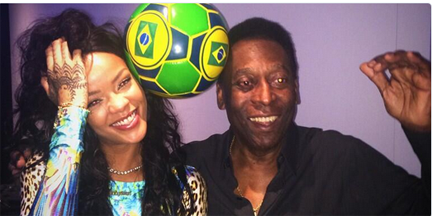 Meanwhile, on Saturday, a clearly buzzed Rihanna showed off her butt in a skimpy bikini. Luckily she put on her shorts to take a pic with Brazilian soccer legend Pele before posting both to Instagram.