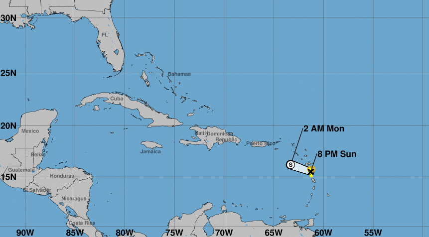 The storm was bringing rain across Dominica, the Leeward Islands, the Virgin Islands and Puerto Rico last night but the wind speed was down dramatically from the initial 90 mph forecast.