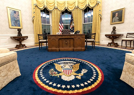 “Biden kept the gold drapes that hung in President Donald Trump’s office, which had previously been in President Bill Clinton’s Oval Office. The dark blue rug was also in the office during the Clinton administration and was selected because Biden liked the deep hue of it.”