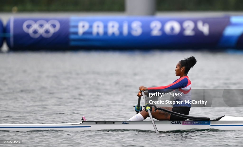 Yariulvis Cobas Garcia of Team Cuba during a rowing training session at Vaires-Sur-Marne Nautical Stadium ahead of the 2024 Paris Summer Olympic Games in Paris, France. (Photo By Stephen McCarthy/Sportsfile via Getty Images)