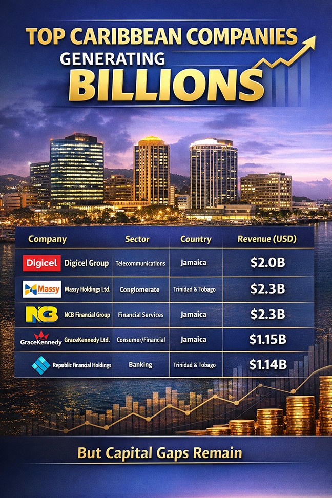 From telecommunications giant Digicel, with estimated revenues exceeding US$2 billion, to diversified conglomerate Massy Holdings and Jamaica’s NCB Financial Group, both reporting revenues above US$2.3 billion, the data paints a clear picture: the Caribbean is not a small market – it is a multi-billion-dollar economic zone.