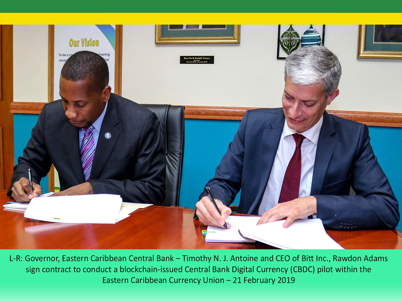 The ECCB and the Barbados-based Fintech company, Bitt Inc. (Bitt), have signed a contract to conduct a blockchain-issued Central Bank Digital Currency pilot within the Eastern Caribbean Currency Union.