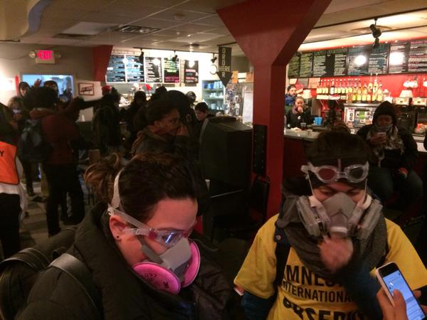 But the news set off a new wave of anger. Bottles and rocks were thrown at officers and windows of businesses were smashed.