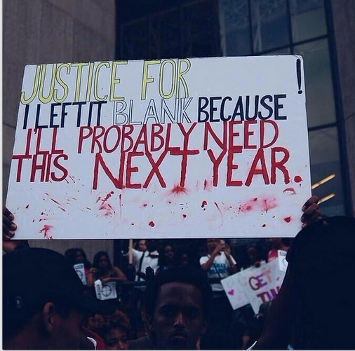 Barbados-born superstar Rihanna, always one to voice her opinion on issues of interest, tweeted a picture to her followers via Instagram that summed up the issue of police killings of blacks in America accurately. The photo featured a young black man holding up a sign that read in all-capped Yellow letters: “Justice For ……” And below it continued: “I left it blank because I’ll probably need this next year.”