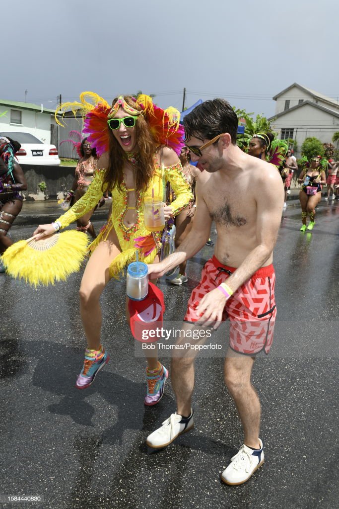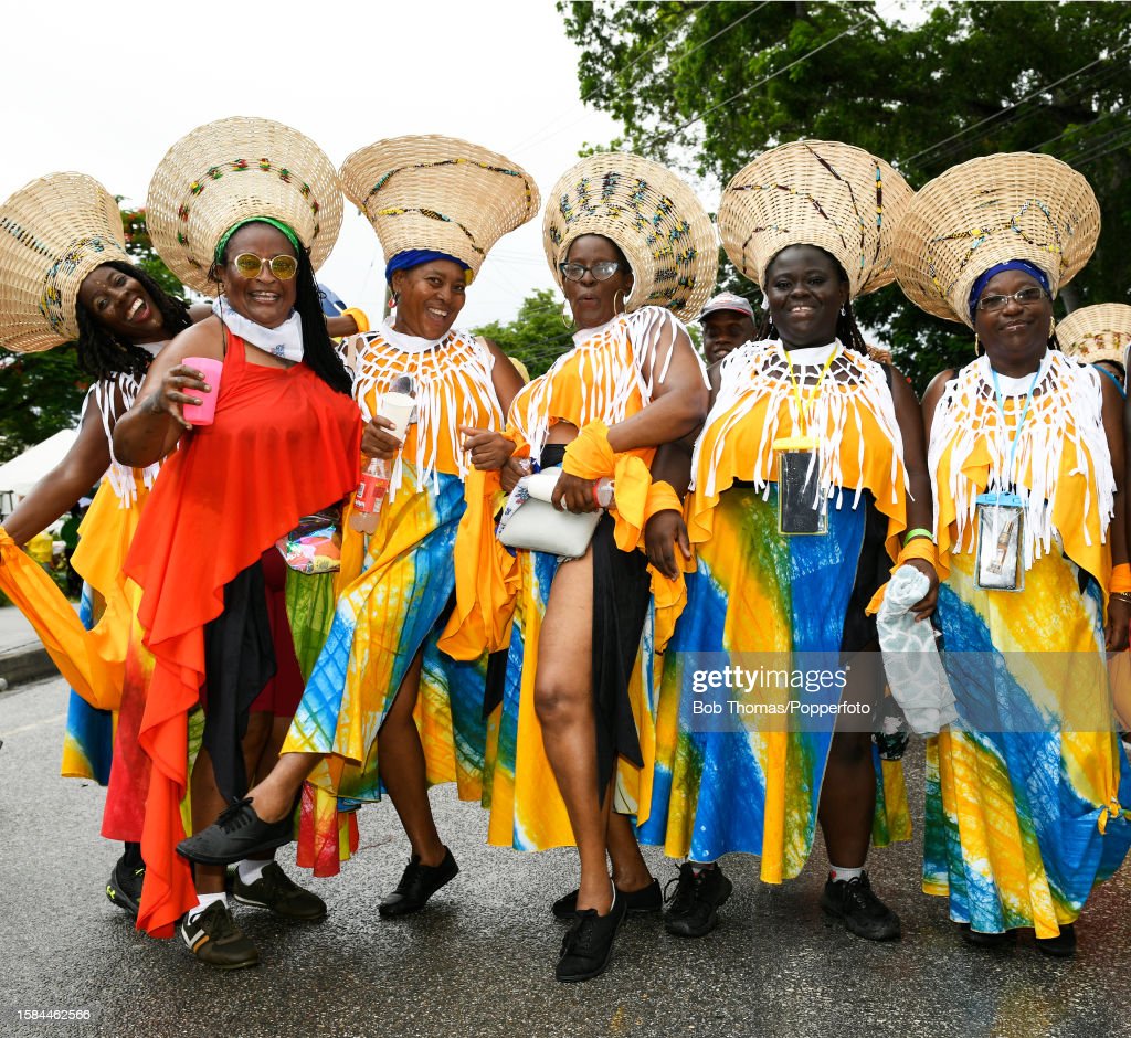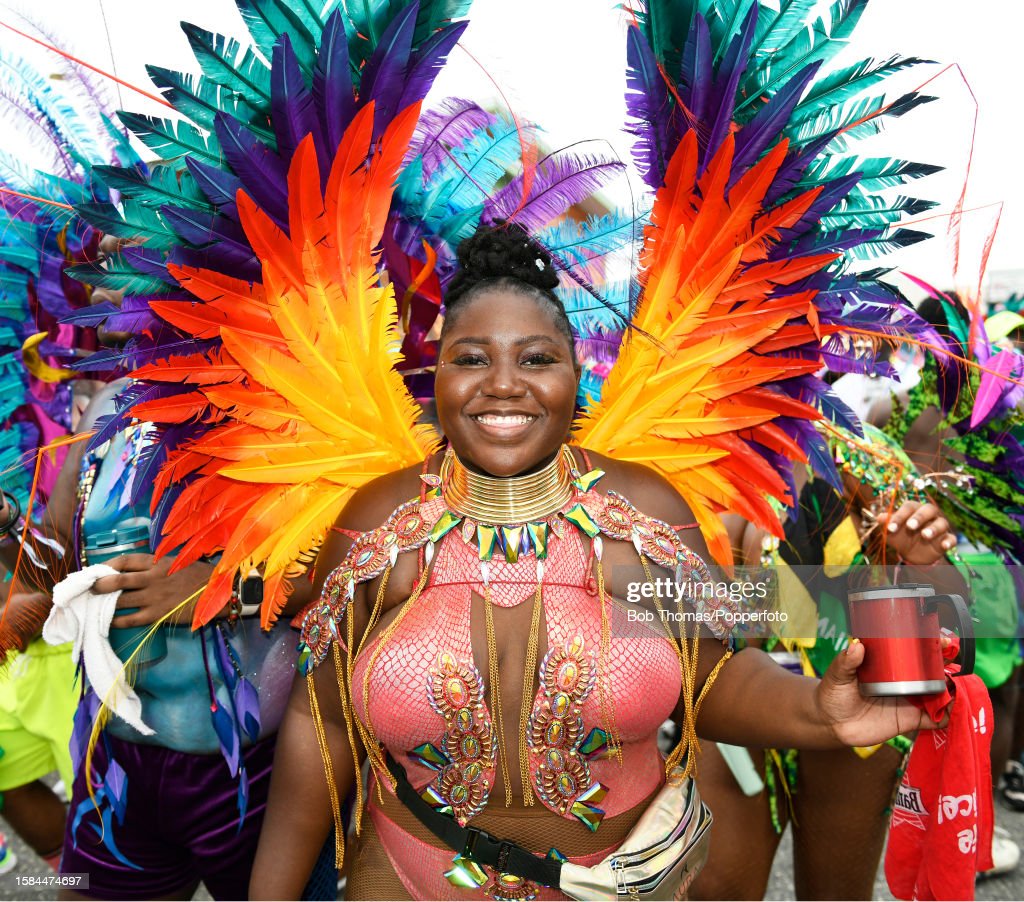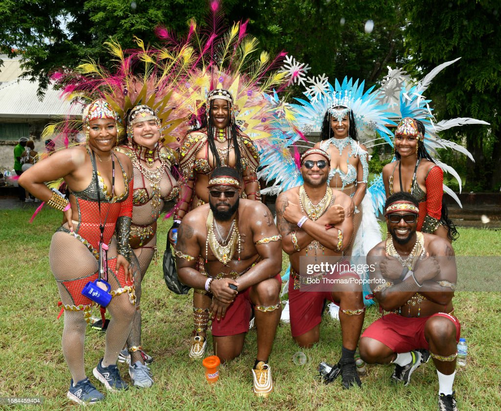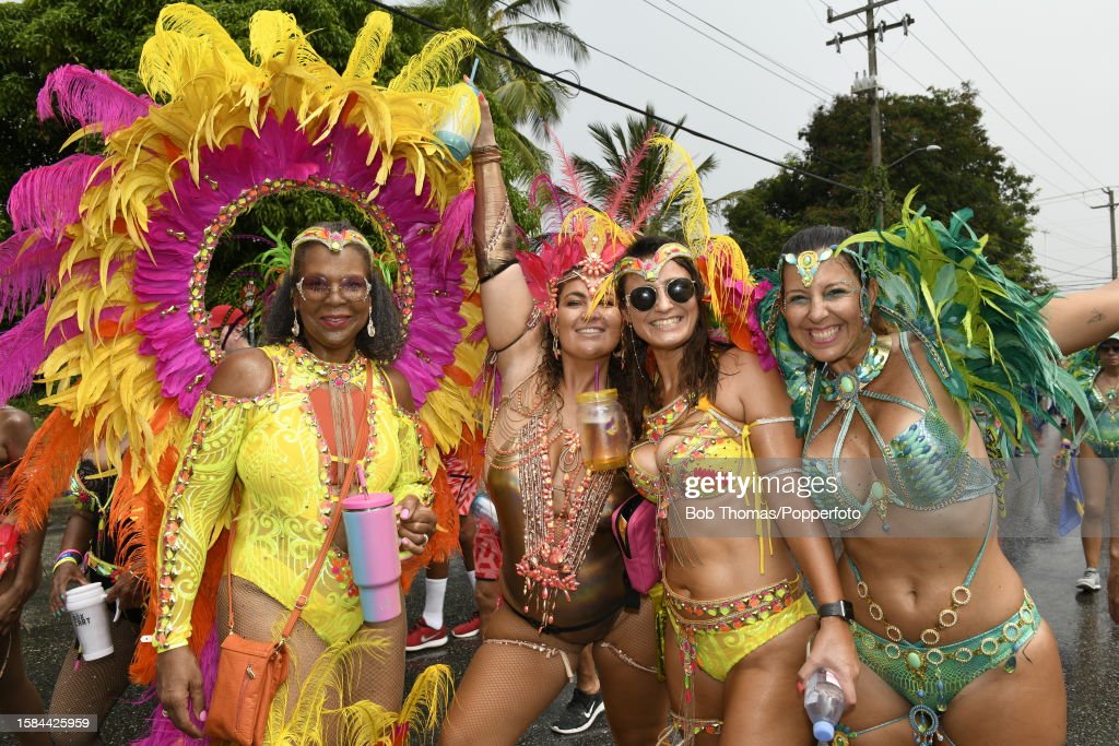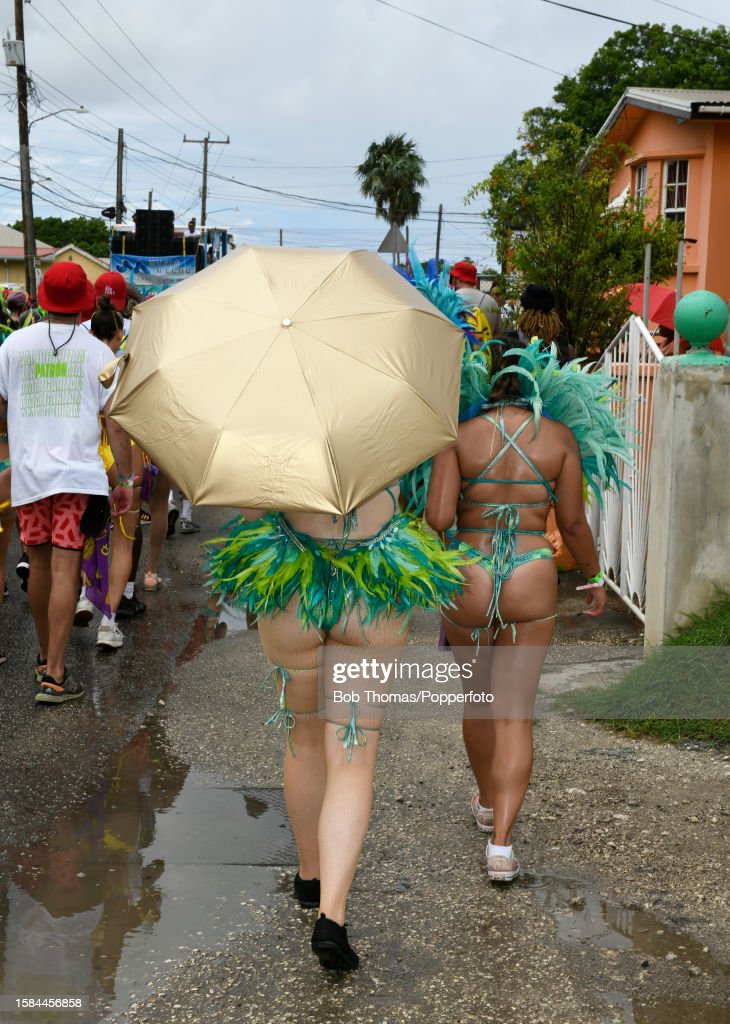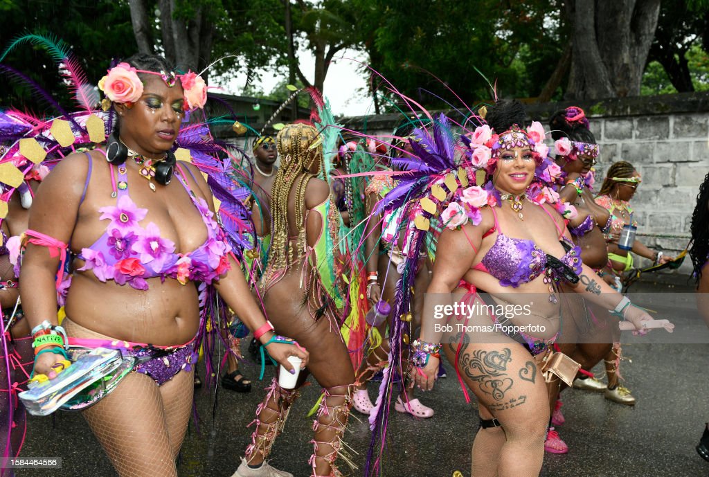 Costumed revelers following the Blue Box Cart Kadooment Band and dancing in the streets during the Caribbean Crop Over Grand Kadooment Carnival in Bridgetown, Barbados on August 7, 2023. (Thomas/Popperfoto via Getty Images)A group of American visitors waiting to join the Caribbean Crop Over Grand Kadooment Carnival in Bridgetown, Barbados, 7th August 2023. (Photo by Bob Thomas/Popperfoto via Getty Images)Revelers during the Caribbean Crop Over Grand Kadooment Carnival in Bridgetown, Barbados, 7th August 2023. (Photo by Bob Thomas/Popperfoto via Getty Images)Revelers during the Caribbean Crop Over Grand Kadooment Carnival in Bridgetown, Barbados, 7th August 2023. (Photo by Bob Thomas/Popperfoto via Getty Images)A woman in costume poses for a photograph during the Caribbean Crop Over Grand Kadooment Carnival in Bridgetown, Barbados, 7th August 2023. (Photo by Bob Thomas/Popperfoto via Getty Images) An umbrella was useful accessory this year for people following the Blue Box Cart Kadooment Band during the Caribbean Crop Over Grand Kadooment Carnival in Bridgetown, Barbados, 7th August 2023. (Photo by Bob Thomas/Popperfoto via Getty Images)A man and woman following the Blue Box Cart Kadooment Band and dancing in the streets during the Caribbean Crop Over Grand Kadooment Carnival in Bridgetown, Barbados, 7th August 2023. (Photo by Bob Thomas/Popperfoto via Getty Images)