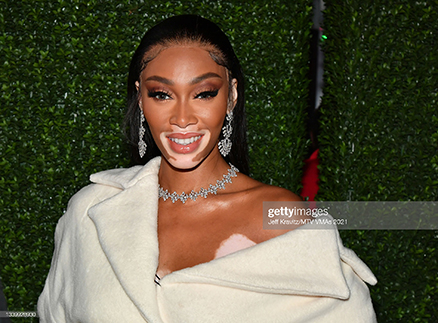 News Americas, BROOKLYN, NY, Mon. Sept. 13, 2021: Jamaican-Canadian fashion model and public spokesperson on the skin condition vitiligo Winnie Harlow was among the celebrities who strutted their stuff last night outside the Barclay’s Center in Brooklyn, NY for the 2021 MTV Music Awards wearing LaQuan Smith SS22 RTW.