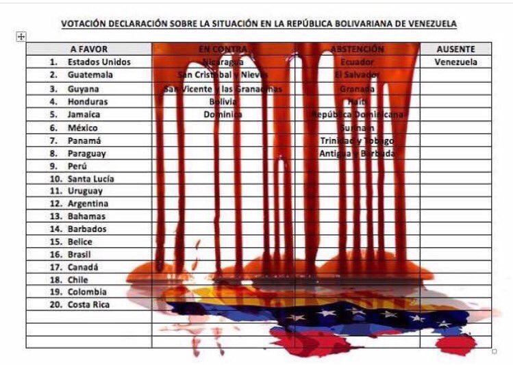 Reinaldo Garcia, replying to Sander’s abstention on behalf of Antigua & Barbuda at the OAS tweeted: “Abstention no exempt murders responsibility #NoSeasComplice, blood stains ur hands #MaduroAsesino, OAS agreement Venezuela! Ur vote missing!