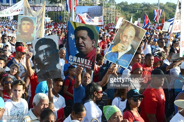 People participate in a parade to commemorate the International Workers’ Day at the Jose Marti Revolution Square, in Havana, Cuba, on May 1, 2017. (Xinhua/Joaquin Hernandez via Getty Images)