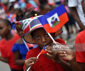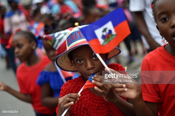 A group of students from the school Coeur Immaculé de Marie take part in a small parade organized for their school on Haitian Flag Day in the center of the Haitian Capital Port-au-Prince on May 18, 2017. (Photo credit should read HECTOR RETAMAL/AFP/Getty Images)
