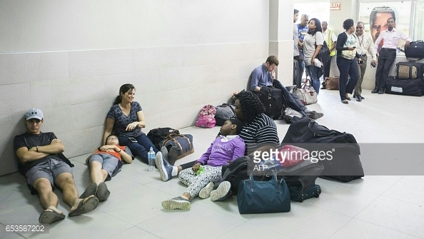 Port-au-Prince international airport was paralyzed Wednesday morning by a strike the security personnel launched without notice, asking for a raise of their wages. The departure of international and national flights’ were blocked for a 3-hour period. / AFP PHOTO / Valerie Baeriswyl (Photo credit should read VALERIE BAERISWYL/AFP/Getty Images)