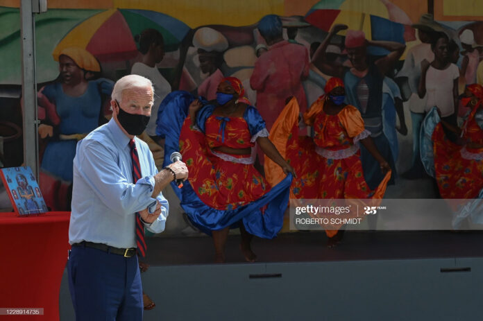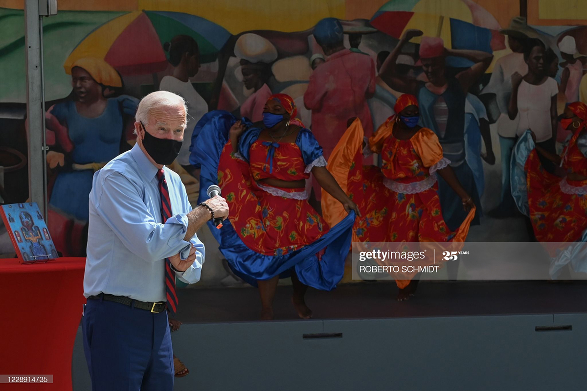 Many Haitians lined the streets outside the Little Haiti Cultural Center in Miami for the Little Haiti Cultural Center in Miami visit of Biden and his wife yesterday. Inside, Biden, welcomed by Haitian dancers, told an audience wearing masks that he is counting on the Haitian American vote to help him swing Florida and win the 2020 presidential election.