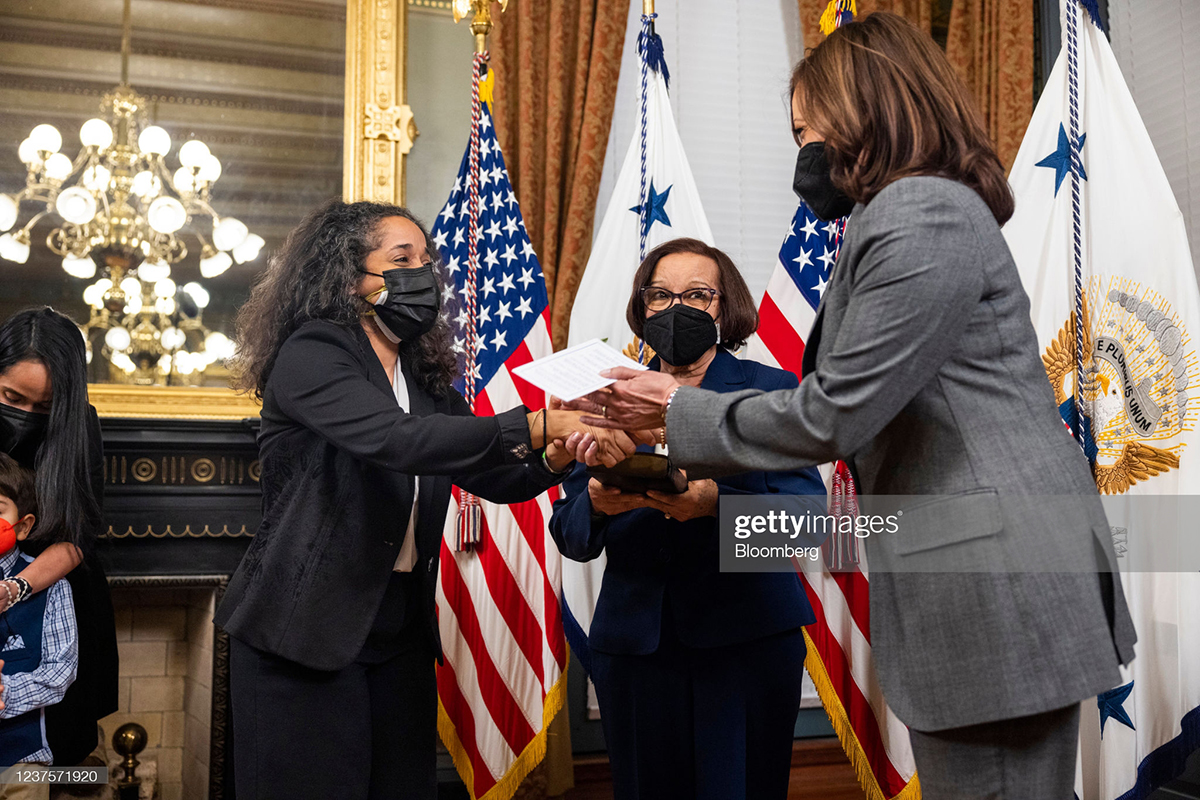 Julissa Reynoso Pantaleon, an immigrant from the Dominican Republic, was sworn in officially by U.S. Vice President, Caribbean American Kamala Harris in the Eisenhower Executive Office Building in Washington, DC, on Thursday, January 6, 2022.