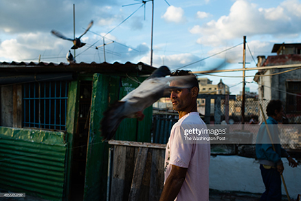 Marrero, 53, says it relaxes him to catch and train pigeons on his Havana rooftop, where he gets to disconnect from the stresses of the pandemic and enjoy the graceful flight of his birds.