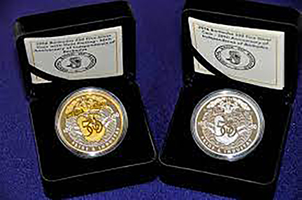The coins come with a certificate of authenticity stating that each one is made of .999 fine silver and plated with 24Kt gold.