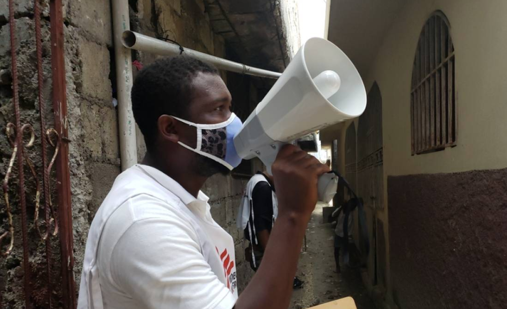 With two thirds of Haitians living in poverty and many homes without running water, hand washing and mask wearing are a luxury. Jean and his team also drive two trucks with loudspeakers to promote COVID-19 prevention messages.