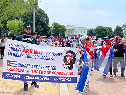 The statement came as thousands of Cuban Americans on Sunday took their protest to the White House in support of continued anti-government protests in Cuba.
