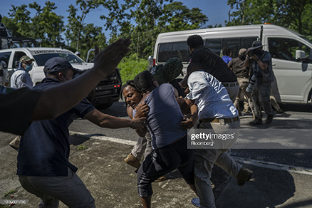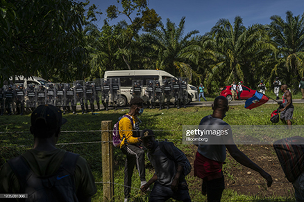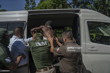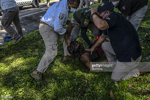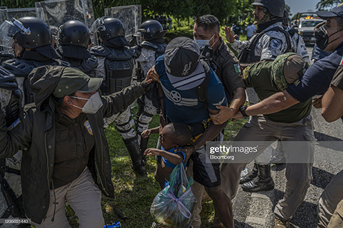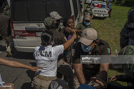 Mexican immigration agents tackle and detain a Haitian migrant in Escuintla, Chiapas state, Mexico, on Thursday, Sept. 2, 2021. Photographer: Alejandro Cegarra/Bloomberg via Getty ImagesMexican immigration agents roughly grab and detain a Haitian migrant with his son in Escuintla, Chiapas state, Mexico, on Thursday, Sept. 2, 2021. Photographer: Alejandro Cegarra/Bloomberg via Getty ImagesMexican immigration agents grab and detain this Haitian woman in Escuintla, Chiapas state, Mexico, on Thursday, Sept. 2, 2021. Photographer: Alejandro Cegarra/Bloomberg via Getty ImagesMexican immigration agents push this Haitian migrant into a vehicle in Escuintla, Chiapas state, Mexico, on Thursday, Sept. 2, 2021. Photographer: Alejandro Cegarra/Bloomberg via Getty ImagesHaitians migrants are stopped by Mexican immigration agents and members of the National Guard during a raid in Escuintla, Chiapas state, Mexico, on Thursday, Sept. 2, 2021. Photographer: Alejandro Cegarra/Bloomberg via Getty ImagesDespite the harsh treatment, these Haitians migrants are pushing on they say as they rest on the side of a highway near Huixtla, Chiapas state, Mexico, on Thursday, Sept. 2, 2021. Photographer: Alejandro Cegarra/Bloomberg via Getty Images