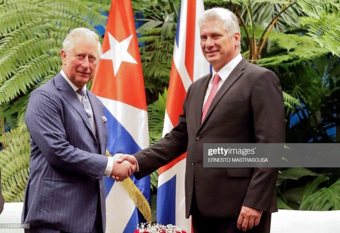 Prince Charles and his wife, Camilla, met with Cuban President Miguel Diaz-Canel on Monday during the first official British royal visit to the island.