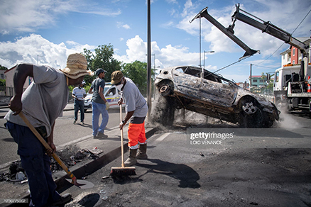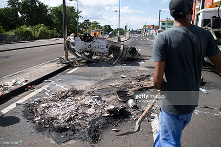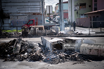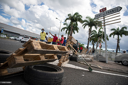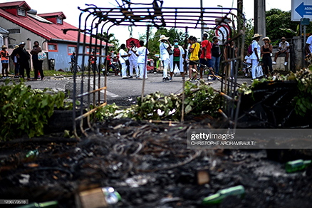 A man walks through debris blocking a road after riots in Fort-de-France, on the French Caribbean island of Martinique, on November 24, 2021, during a general strike called by unions to protest against measures to curb the spread of Covid-19, and labor and social issues. -(Photo by LOIC VENANCE/AFP via Getty Images)People clear the wreckage of burnt cars that block a road in Fort-de-France, on the French Caribbean island of Martinique, on November 24, 2021, during a general strike called by unions to protest against measures to curb the spread of Covid-19, and labor and social issues. (Photo by LOIC VENANCE/AFP via Getty Images) Hardline opponents of measures that include compulsory vaccination for healthworkers on the island of Guadeloupe manned barricades of burning tires while on Martinique police were targeted by gunfire. (Photo by LOIC VENANCE/AFP via Getty Images)Demonstrators walk past gendarmes blocking an area during a protest march against measures to limit the spread of Covid-19 in Les Abymes, outside Pointe-a-Pitre, on the French Caribbean island of Guadeloupe, on November 24, 2021. – (Photo by CHRISTOPHE ARCHAMBAULT/AFP via Getty Images)A demonstrator carries a box with burning incense during a protest march against measures to limit the spread of Covid-19 in Les Abymes, outside Pointe-a-Pitre, on the French Caribbean island of Guadeloupe, on November 24, 2021. (Photo by CHRISTOPHE ARCHAMBAULT/AFP via Getty Images)Medical personnel wearing white lab coats stand behind a barricade of burnt debris ahead of a protest march against measures to limit the spread of Covid-19 in Les Abymes, outside Pointe-a-Pitre, on the French Caribbean island of Guadeloupe, on November 24, 2021. Protesters in French overseas territories in the Caribbean opposing measures to limit the spread of Covid-19 clashed again with security forces on November 23 as the Paris government vowed to restore order. (Photo by CHRISTOPHE ARCHAMBAULT/AFP via Getty Images)Unionists block a road in Fort-de-France, on the French Caribbean island of Martinique, on November 24, 2021, during a general strike called by unions to protest against measures to curb the spread of Covid-19, and labor and social issues. (Photo by LOIC VENANCE/AFP via Getty Images)