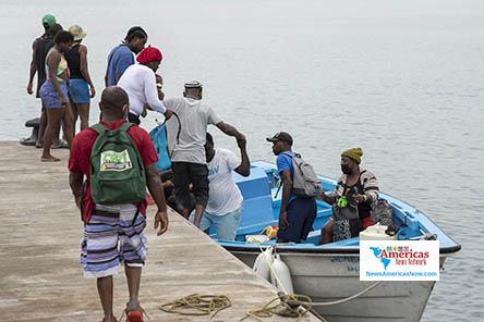 Farmers board a boat that takes them from the shelter to their homes daily for USD 16 or EC 40, as they check on their property and try to clean up following the continued volcanic devastation. (NewsAmericasNow.com image/Seymour Hinds)