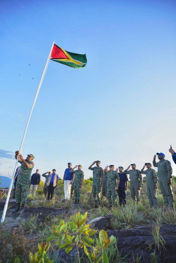 Guyanese President Irfaan Ali visited troops in Essequibo and dramatically hoisted a Guyanese flag on a mountain overlooking the border with Venezuela. Ali has affirmed Guyana’s commitment to navigating the border controversy with Venezuela through a path of peace, hope, and dignity.