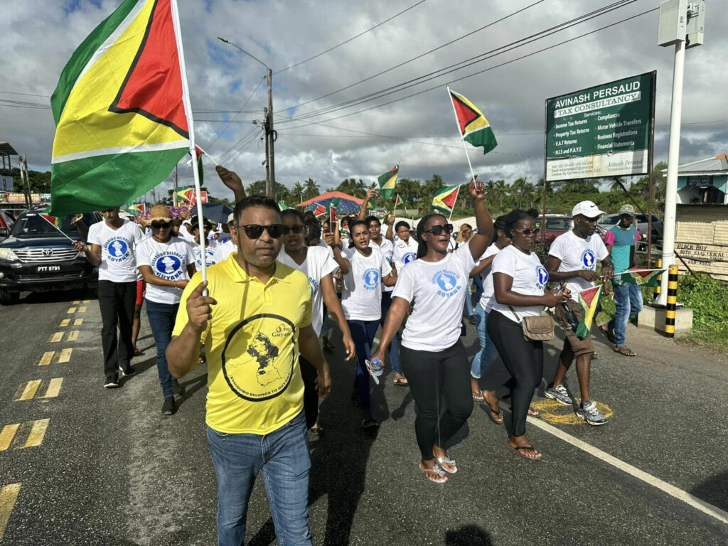 Guyana’s Minister within the Ministry of Public Works, Deodat Indar, led a patriotic march through the communities on the East Bank of Essequibo on Dec. 3, 2023. (GINA image)