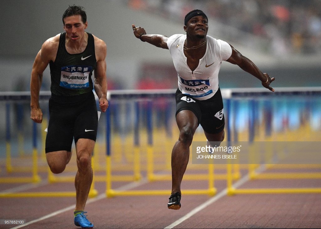 News Americas, NEW YORK, NY, Fri. May 18, 2018: Reigning Jamaican Olympic champion, Omar McLeod, barely held off Spain’s Orlando Ortega to win the men’s 110 meters hurdles on a rain-drenched night at the Shanghai Diamond League in China Saturday.