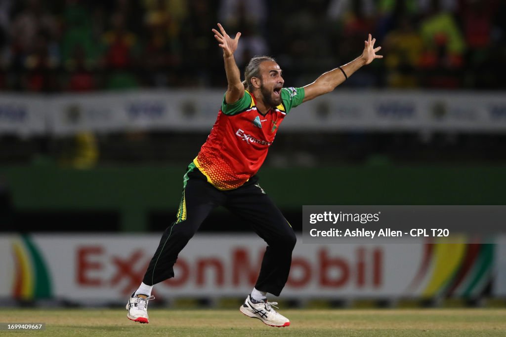 GEORGETOWN, GUYANA – SEPTEMBER 24: Guyana Amazon Warriors celebrate winning the 2023 Republic Bank Caribbean Premier League during the Republic Bank Caribbean Premier League Final between Trinbago Knight Riders and Guyana Amazon Warriors at Providence Stadium on September 24, 2023 in Guyana. (Photo by Ashley Allen – CPL T20/CPL T20 via Getty Images)Imran Tahir of Guyana Amazon Warriors appeals during the Republic Bank Caribbean Premier League Final between Trinbago Knight Riders and Guyana Amazon Warriors at Providence Stadium on September 24, 2023 in Guyana. (Photo by Ashley Allen – CPL T20/CPL T20 via Getty Images)