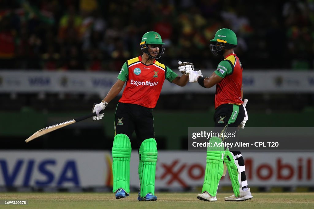Saim Ayub and Shai Hope of Guyana Amazon Warriors led their team to win the Republic Bank Caribbean Premier League Final between Trinbago Knight Riders and Guyana Amazon Warriors at Providence Stadium on September 24, 2023 in Georgetown, Guyana. (Photo by Ashley Allen - CPL T20/CPL T20 via Getty Images)