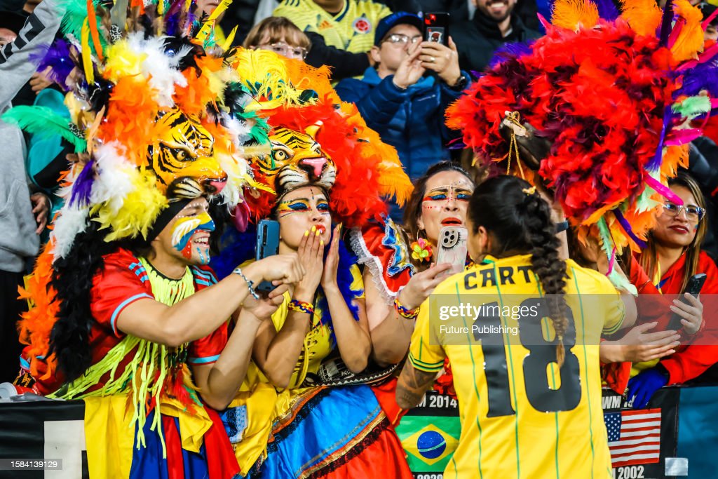 Carolina Arias of Colombia celebrates with fans after beating Jamaica at the FIFA Women’s World Cup Australia & New Zealand 2023 at Melbourne Rectangular Stadium. (Photo credit: Chris Putnam/Future Publishing via Getty Images)