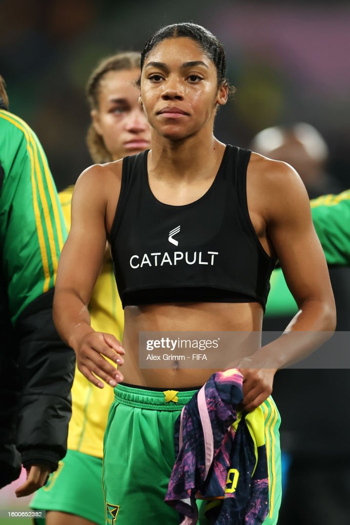 Atlanta Primus of Jamaica shows dejection after the team’s 0-1 defeat and elimination from the tournament following the FIFA Women’s World Cup Australia & New Zealand 2023 Round of 16 match between Colombia and Jamaica at Melbourne Rectangular Stadium on August 08, 2023 in Melbourne / Naarm, Australia. (Photo by Mackenzie Sweetnam – FIFA/FIFA via Getty Images)