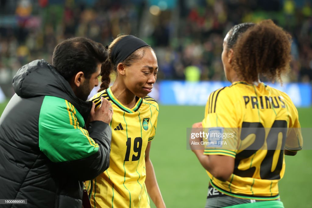 Tiernny Wiltshire and Atlanta Primus of Jamaica look dejected after the team’s 0-1 defeat and elimination from the tournament following the FIFA Women’s World Cup Australia & New Zealand 2023 Round of 16 match between Colombia and Jamaica at Melbourne Rectangular Stadium on August 08, 2023 in Melbourne / Naarm, Australia. (Photo by Alex Grimm – FIFA/FIFA via Getty Images)Kameron Simmonds of Jamaica shows dejection after the team’s 0-1 defeat and elimination from the tournament following the FIFA Women’s World Cup Australia & New Zealand 2023 Round of 16 match between Colombia and Jamaica at Melbourne Rectangular Stadium on August 08, 2023 in Melbourne / Naarm, Australia. (Photo by Alex Grimm – FIFA/FIFA via Getty Images)Drew Spence of Jamaica reacts during the FIFA Women’s World Cup Australia & New Zealand 2023 Round of 16 match between Colombia and Jamaica at Melbourne Rectangular Stadium on August 08, 2023 in Melbourne / Naarm, Australia. (Photo by Alex Grimm – FIFA/FIFA via Getty Images)