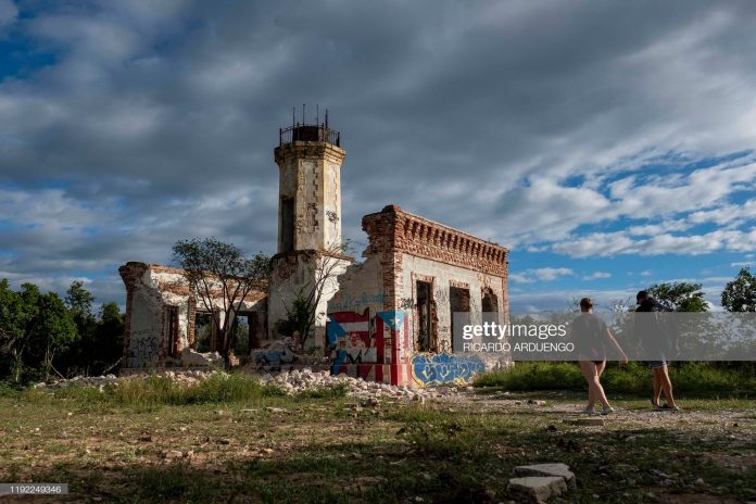 NEWS AMERICAS, SAN JUAN, PUERTO RICO, Tues. Jan. 7, 2020: A 5.8-magnitude earthquake shook Puerto Rico on January 6, 2020, collapsing the wall of the ruins of the abandoned but iconic Guánica Light landmark lighthouse in Guanica, Puerto Rico.