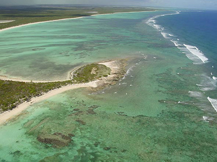 Surrounded by azure ocean waters and fringed with pristine white sand beaches, the island elevation varies from sea level to a hilly 40 feet. The eastern side of the island features deep water access, perfect for large ships to pull up.
