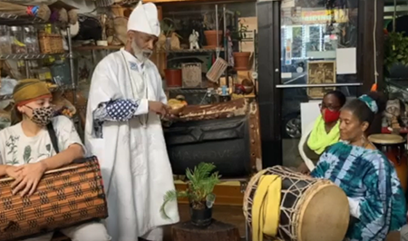 Guyanese master drummer and spiritualist Menes De Griot opened the show with a libation to Harris and ended with a rhythmic drum tribute with his Shanto drummers at the at the ICN/CAAN global Caribbean inauguration tribute to Kamala Harris