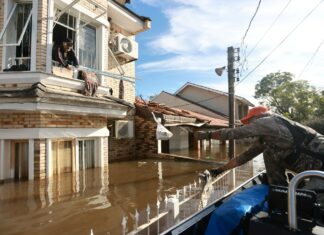 Florianopolis, Brazil – The floodwaters in southern Brazil lapped near rooftops, turning roads into rivers...