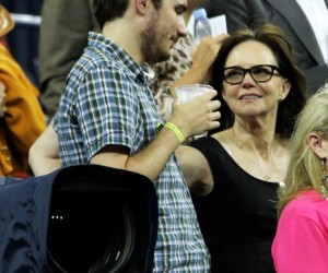 Sally Fields and son Samuel at the Roger Federer match on Sept. 2, 2014.