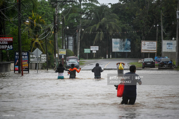 Families waded through flooded streets of the northern Honduran city of San Pedro Sula, while cars sat almost submerged in parts of the central Guatemalan city of San Pedro Carcha, television footage and images posted on social media showed.