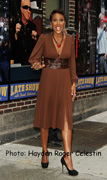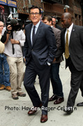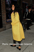 News Americas, NEW YORK, NY, Tues. April 22, 2014: Singer Kelis, TV Anchor on Good Morning America, Robin Roberts, and Stephen Colbert, host of the Colbert Report, pose for photographers outside the Ed Sullivan Theater, as they arrive for their taping on the Late Show with David Letterman, Tuesday April 22, 2014, in New York City. Stephen Colbert, was chosen to replace David Letterman, in 2015. (Photo: Hayden Roger Celestin)