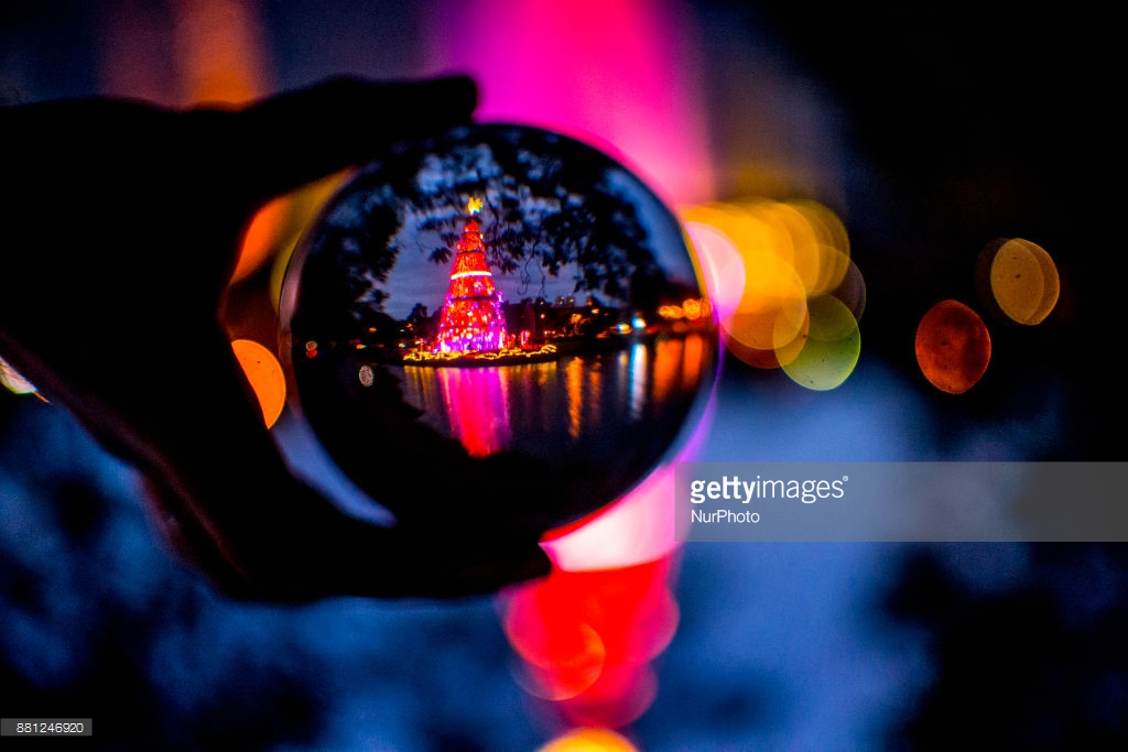 Families enjoy the Christmas tree in the Ibirapuera Park in Sao Paulo, Brazil, on 28 November 2018. A tourist attraction at the end of the year in São Paulo, the Christmas tree is inside the Ibirapuera Park. Traditional symbol of the Christmas season in the city, the tree 40 meters high and 15 meters wide is available for public visitation from November 25th to January 6th, from 5am to midnight. (Photo by Cris Faga/NurPhoto via Getty Images)