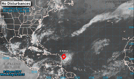 Erika is expected to produce total rain accumulations of 3 to 5 inches with maximum amounts of 8 inches across portions of the Leeward Islands, the Virgin Islands, Puerto Rico and the Dominican Republic through Friday.