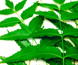 Azadirachta indica, also known as Neem trees grow wildly in many Caribbean countries. It is a fast-growing tree that can reach a height of 15–20 metres (49–66 ft), and is evergreen. Its leaves are known for their immune boosting properties and can lower the risk of high blood pressure, high blood sugar, large prostate and even prevent cancer as well as treat skin diseases like eczema, psoriasis, according to some experts. Neem leaves are dried and burnt in some places to keep away mosquitoes. Its fruits and seeds are also made into Neem oil which is also used for healthy hair, to improve liver function, detoxify the blood, and balance blood sugar levels.
