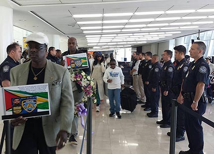 News Americas, NEW YORK, NY, Fri. Oct. 30, 2015: The body of murdered Guyana-born NYPD officer, Randolph Holder, was yesterday flown to his native land by the locally-owned carrier, Fly Jamaica.