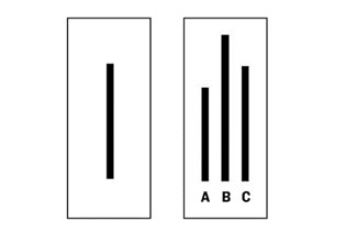 In the Ash Conformity Study several individuals are placed in a group to participate in what’s called a vision test. All the participants except the individual being studied are accomplices who have been told before-hand how to answer as each pair of pictures are brought up. The task is simply enough, name which line A, B or C that is the same length as the line on the left.