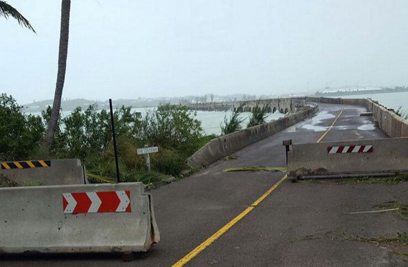 The Causeway i Bermuda has sustained damage from Hurricane Nicole. (Bernews.dot.com image)