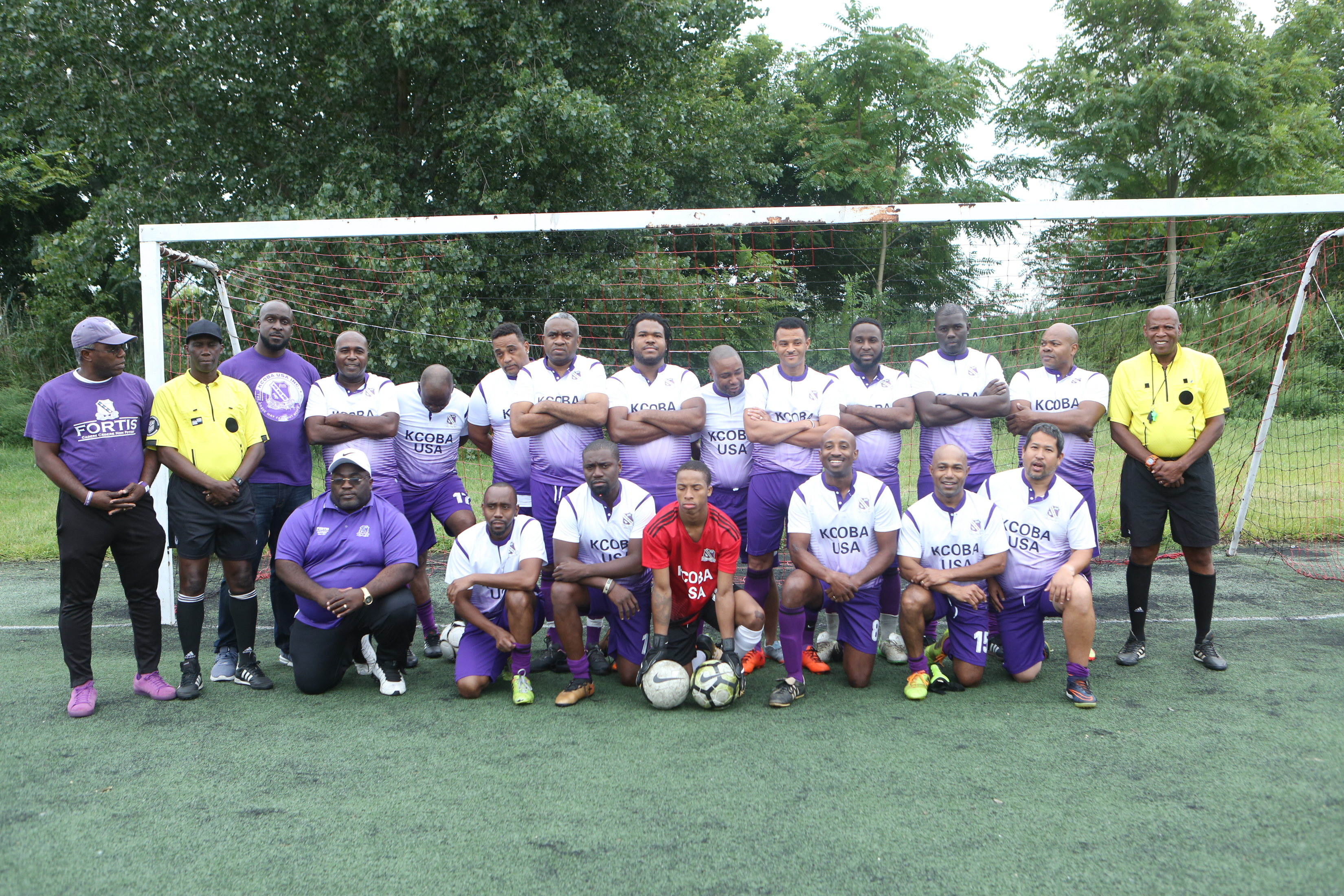 The ref’s whistle signaled the end of the first featured match – the masters (over 35) between KC and St. George’s, which was very entertaining and ended with KC 3, St. George’s 1. KC won the Sydney “Foggy” Burrowes Trophy with Dean Streete (KC) being named the game’s MVP.